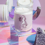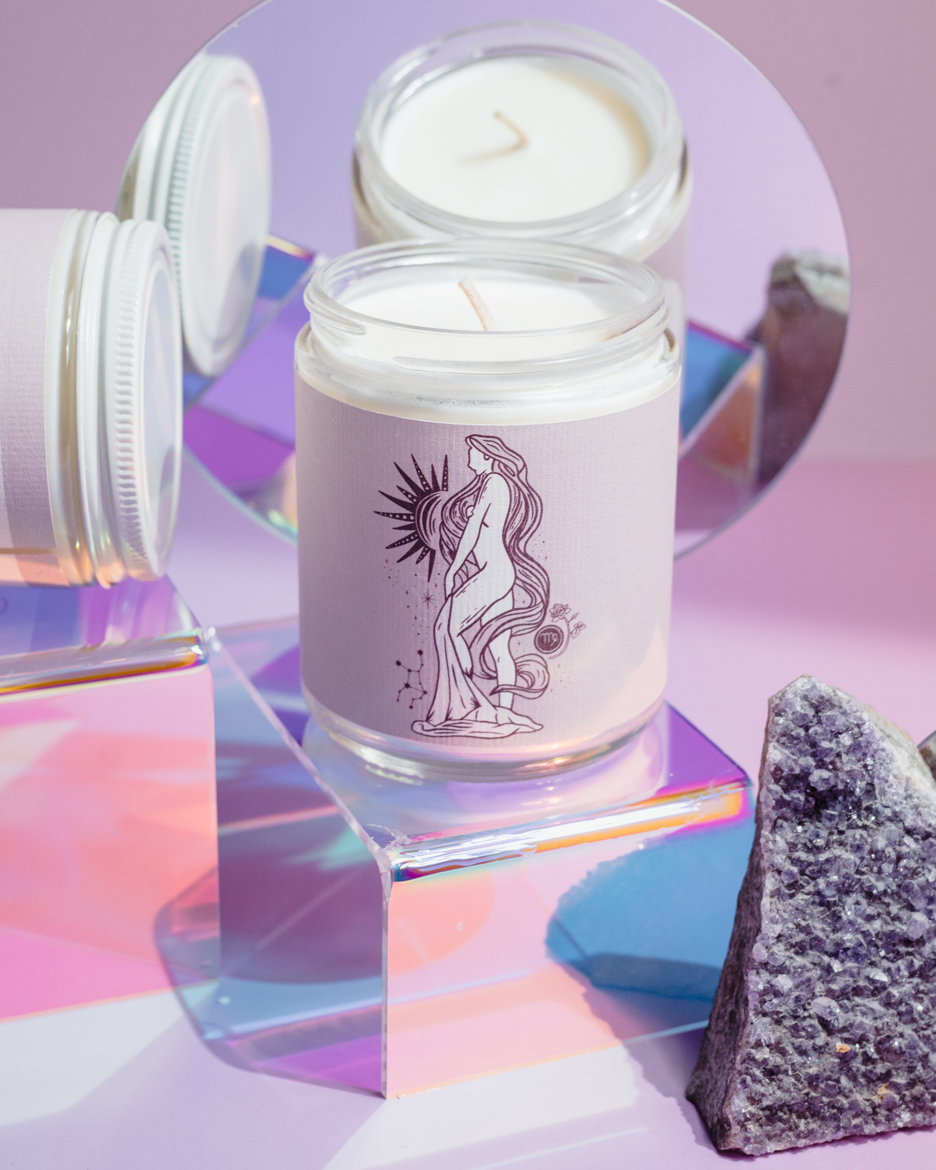 virgo astrology zodiac sign with woman on soy wax candle